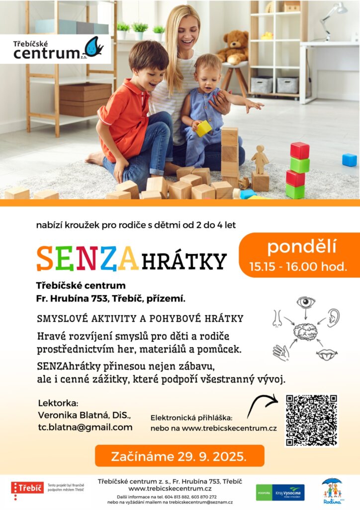 Zveme na ukázkovou hodinu nového kroužku pro rodiče s dětmi SENZAhrátky. Spojíme pohyb, radost a smyslové hraní. Kroužek je určen pro rodiče s dětmi od 2 let. Prosíme svoji účast nahlaste lektorce kroužku na tel. 725 530 059 (stačí i SMS). Zítra se budeme těšit.
