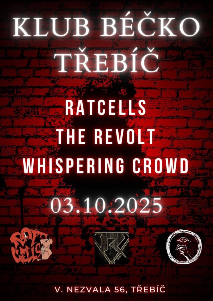 🔥 Whispering Crowd – znojemská kapela, která se na pódiu energie rozhodně nebojí. Strhnou publikum hned od prvního tónu a jejich nabitý repertoár nenechá nikoho stát u zdi!