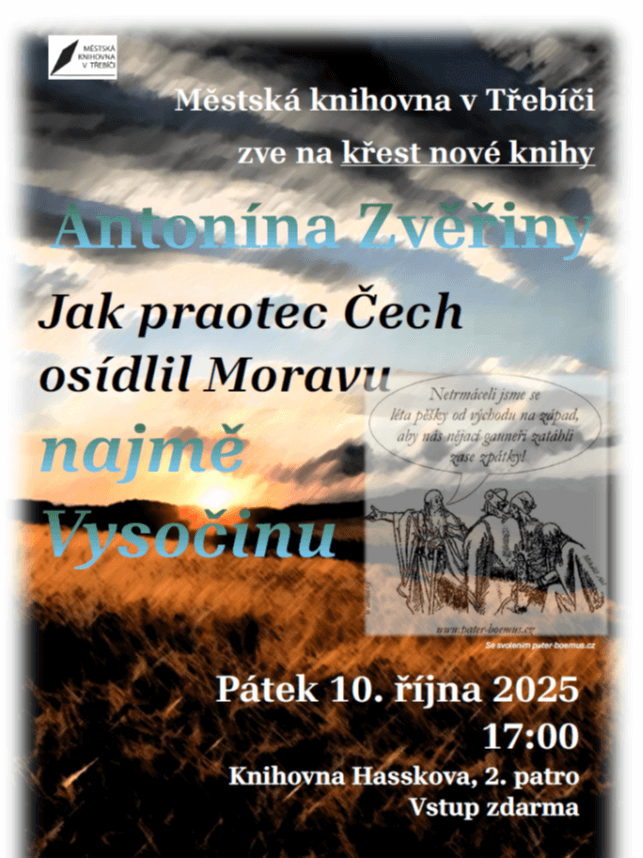 S humorem sobě vlastním předkládá Antonín Zvěřina svoji verzi o cestě praotce Čecha, který od řeky Volhy v Rusku míří na západ, až dojde na Moravu a postupně svými souputníky osídlí všechny části Vysočiny. Sám dojde až na Říp.