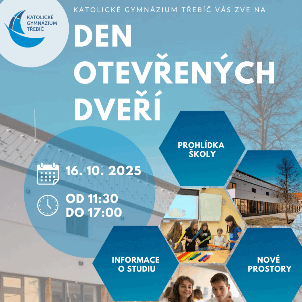 Srdečně Vás zveme na Den otevřených dveří Katolického gymnázia Třebíč, který se uskuteční ve středu 16. října 2025.