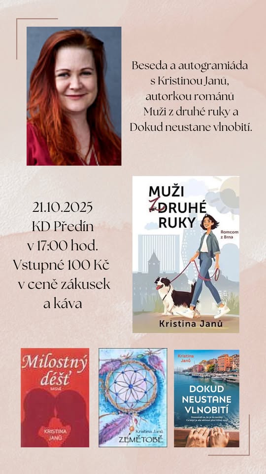 Beseda a autogramiáda s autorkou knihy MUŽI Z DRUHÉ RUKY Kristinou Janů