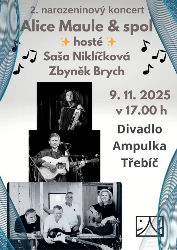Přátelé, kamarádi, příznivci! Co nejsrdečněji Vás zvu na můj druhý narozeninový koncert, v neděli 9.11. 2025. S láskou vzpomínám na ten loňský – první a napadlo mě, že by z toho mohla být tradice. Mám obrovskou radost, že letos budeme mít i tyto dva vzácné hudební hosty! Mé pozvání přijali Saša Niklíčková a Zbyněk Brych. Těšíme se na Vás, na přátelská a hudební setkání