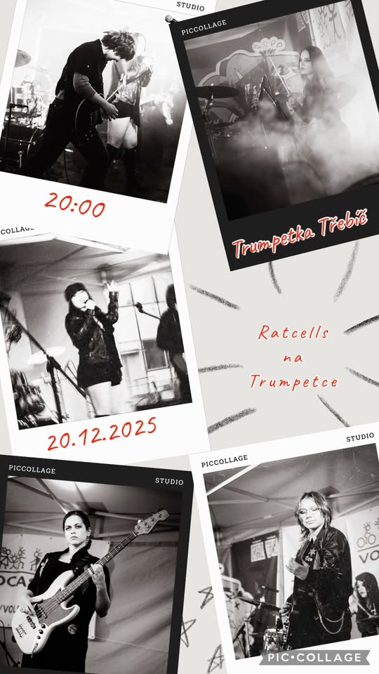 Čau Krysy, 20.prosince budeme hrát v Třebíči na Trumpetce, bude to teda bez trumpety, ale i tak vám předvedeme pořádnou krysí show. Přijď se naladit na vánoční náladu, dát si něco dobrého a užít si pořádnou dívčí muziku.