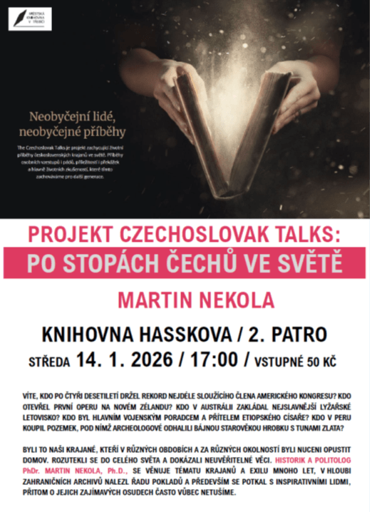 Městská knihovna zve na přednášku Martina Nekoly, koordinátora projektu Czechoslovak Talks:
