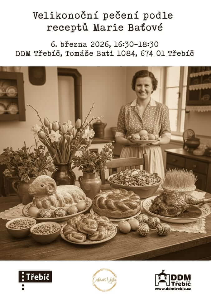 Zveme vás na unikátní setkání v DDM Třebíč, kde společně oživíme tradici a eleganci první republiky. Podíváme se pod pokličku receptům Marie Baťové, manželky zakladatele obuvnického impéria, která byla známá svou láskou k tradicím a skvělou kuchyní.