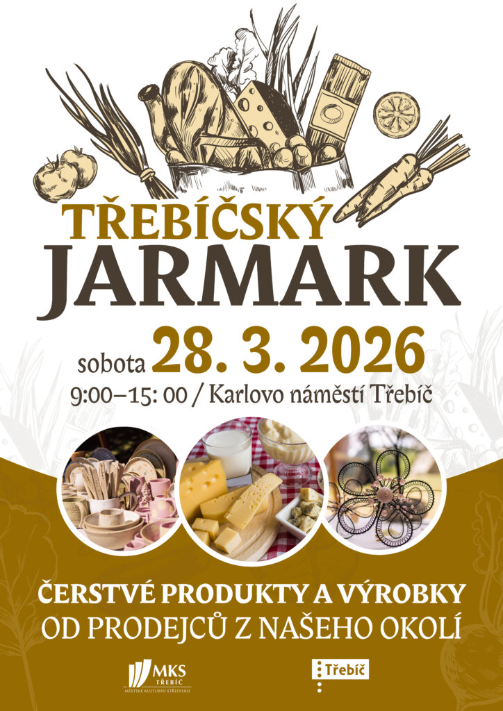 V sobotu 28. března ožije Karlovo náměstí v Třebíči tradičním Třebíčským jarmarkem. Od 9 do 15 hodin zde budou prodejci z regionu nabízet čerstvé potraviny, domácí produkty i řemeslné výrobky. Návštěvníci se mohou těšit na pestrý výběr lokálních dobrot i originálních výrobků od producentů z našeho okolí.