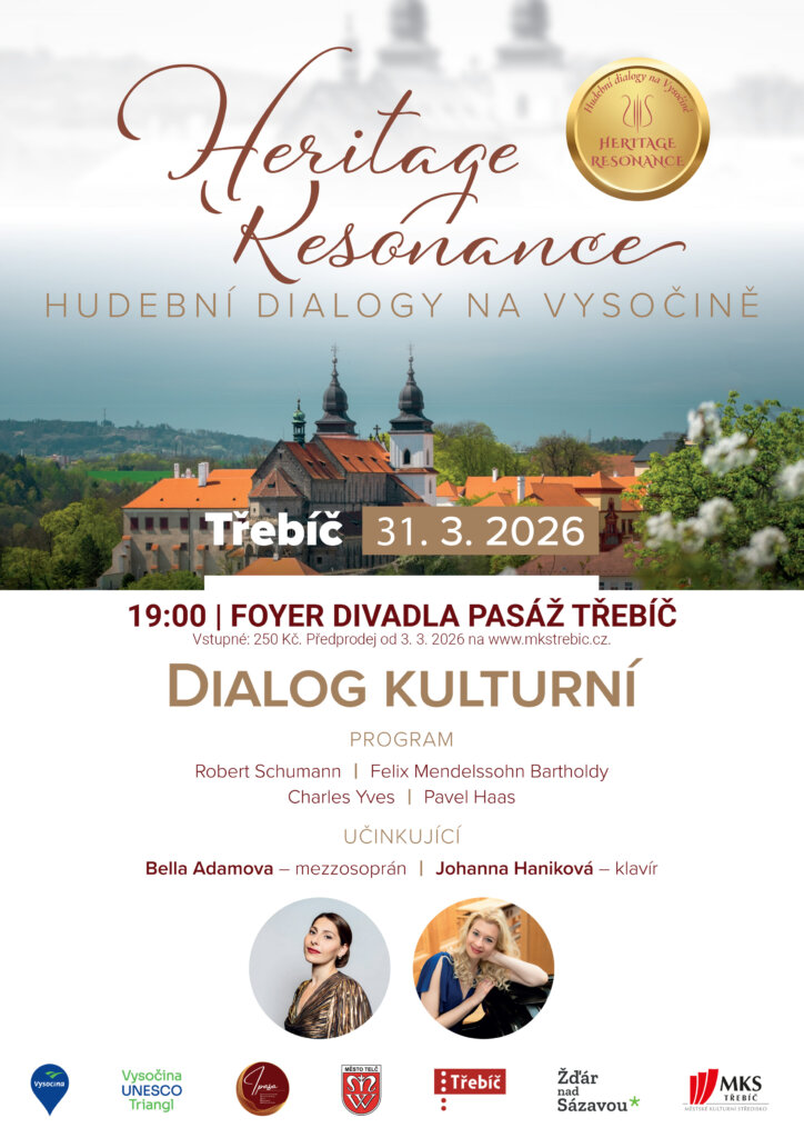 Historická památka UNESCO v Třebíči tvoří světový unikát nejen architektonickými skvosty, ale především poselstvím náboženské a kulturní tolerance. V první polovině koncertu představíme hudební dialog skladatele židovského původu Pavla Haase, rodáka z Brna, který patří do skupiny terezínských skladatelů, kteří byli kvůli svému židovskému původu odsunuti nejprve do koncentračního tábora v Terezíně. Pavel Haas byl následně deportován do Osvětimi, kde byl v roce 1944 zavražděn. Zazní rovněž písně amerického skladatele Charlese Yvese, které svou barevnou škálou zachycují příběhy indiánů, tehdejších cirkusů i parafrázi Dvořákovy slavné písně “Když mne stará matka”.