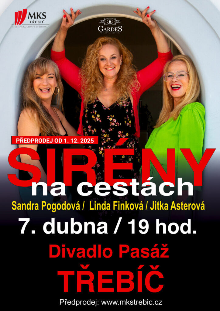 Sirény na cestách je volné pokračování vystoupení trojice hereček a zpěvaček Sandry Pogodové, Jitky Asterové A Lindy Finkové. Jejich neotřelý smysl pro humor a vzájemná chuť si ze sebe utahovat vás rozhodně pobaví. Pořad je plný šťavnatých vyprávění a historek ze zákulisí natáčení a divadelního světa. To vše prošpikováno šansony a písněmi z muzikálů tvoří dokonalý program, na který budete dlouho vzpomínat s úsměvem na tváři.
