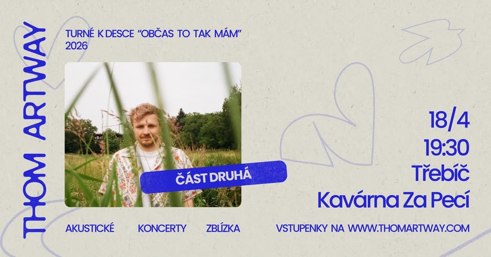 Na jaře 2026 se Thom Artway vydává na druhou část svého úspěšného akustického turné Zblízka, které tentokrát nabídne deset komorních koncertů napříč Českem. Intimní atmosféra koncertů dá vyniknout jeho starším hitům i novinkám z alba Občas to tak mám, které vyšlo v září loňského roku.