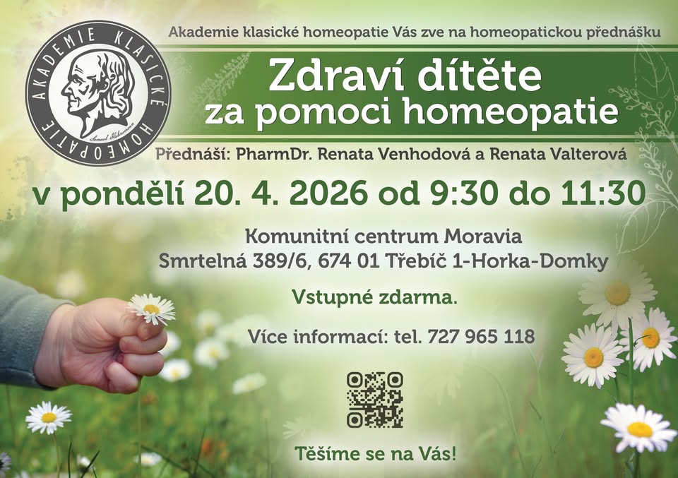 Jak může homeopatie pomoci při péči o zdraví dětí? Na přednášce se dozvíte, jak lze homeopatické léky využít při běžných dětských potížích, jako jsou nachlazení, kašel, horečky, zažívací obtíže nebo oslabená imunita.
