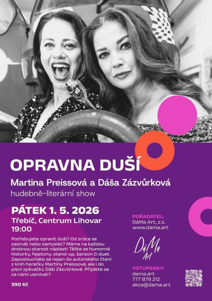 Pojďte spolu s námi zažít večer, kdy se vám pokusíme opravit duše. Dvě ženy, kolegyně, kamarádky přicházejí do autentického prostoru Lihovaru, aby vám zazpívaly, popovídali o životě a přečetly z knih.