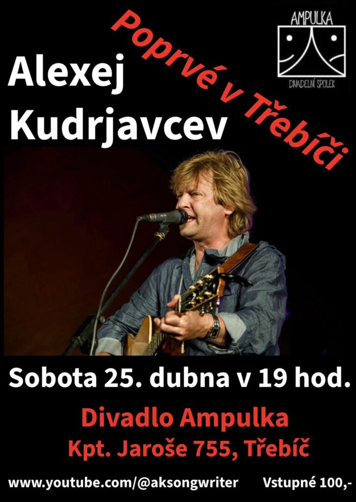 Alexej Kudrjavcev se narodil v roce 1972 v Moskvě. Básník, spisovatel, divadelní a filmový herec. Je známý nejen jako autor, ale i jako jeden z nejlepších interpretů písní Vladimira Vysockého. Na Vysočině žije od roku 2012, v České republice mu vyšla alba Srdce (2015) a Malí lidé (2016). Hraje v Divadle Klauniky v Brně. Pravidelně koncertuje v Evropě a USA.
