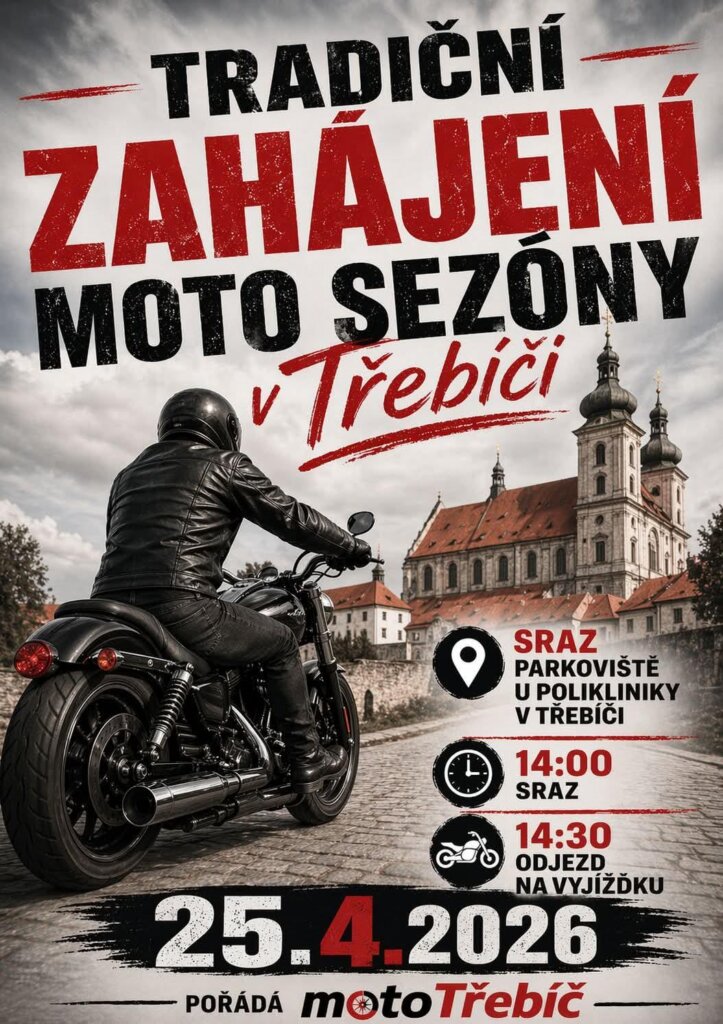 Sraz bude v sobotu 25.4. 2026 ve 14:00 na parkovišti u polikliniky Vltavínská a cca 14:30 odjezd na vyjížďku směrem Jaroměřice nad Rokytnou…